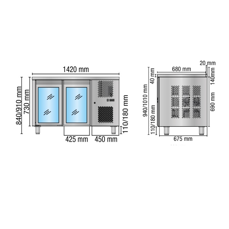 Avec ses dimensions généreuses de 1420x700x940/1010 mm et son volume utile de 210 litres, cette table réfrigérée offre un espace de stockage généreux pour tous vos besoins. Son groupe frigorifique ventilé maintient une température constante entre +2°C et +8°C, garantissant ainsi une conservation optimale des aliments, même dans les environnements les plus exigeants.