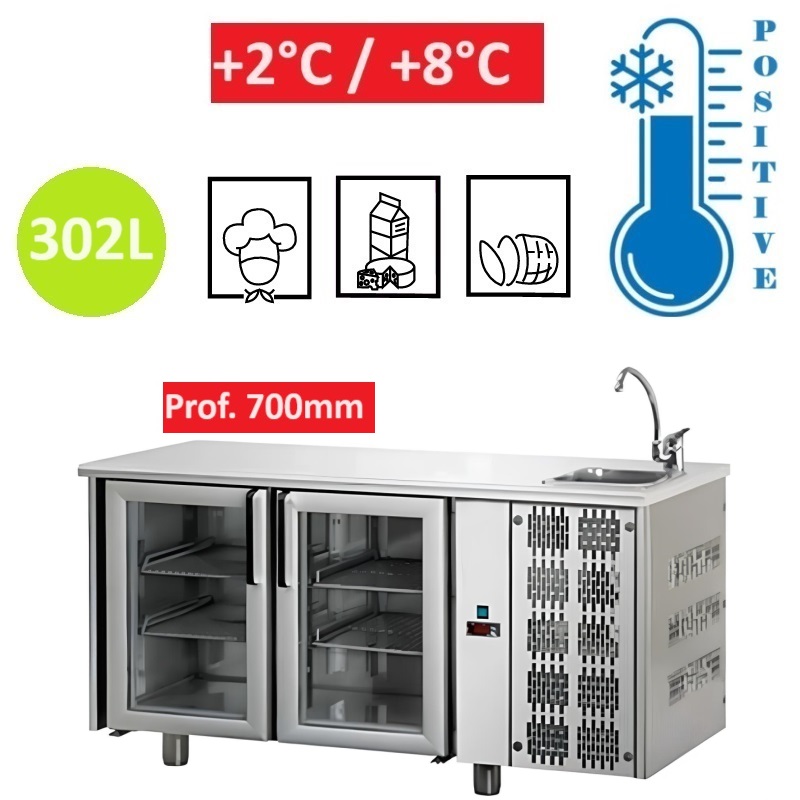 Table Réfrigérée INOX 2 Portes Vitrées GN 1/1 avec Évier et Robinet : La Fusion Parfaite de la Fonctionnalité et de la Performance
