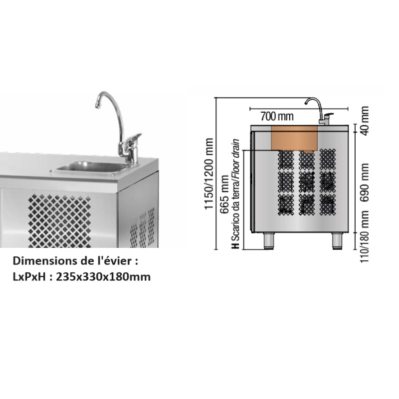 L'évier et le robinet intégrés offrent une commodité incomparable pour les tâches quotidiennes de nettoyage et de préparation. Le robinet avec mitigeur et raccord de tuyau d'évacuation permet un accès facile à l'eau, ce qui facilite le nettoyage des ustensiles et des surfaces de travail, améliorant ainsi l'efficacité de votre cuisine.