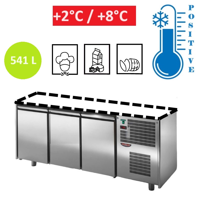Table réfrigérée INOX 3 portes sans Plan de travail Tecnodom