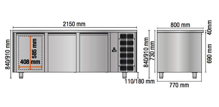 -Groupe frigorifique monobloc extractible standard (température ambiante +30°C et humidité relative 60%) accès facile pour le nettoyage et l'entretien standard