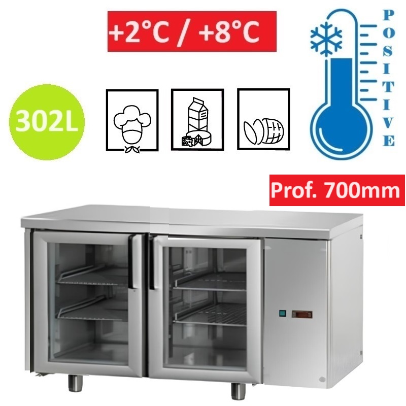 Table Réfrigérée Positive 2 Portes Vitrées GN 1/1 Prof. 700 : La Solution Polyvalente pour Votre Établissement