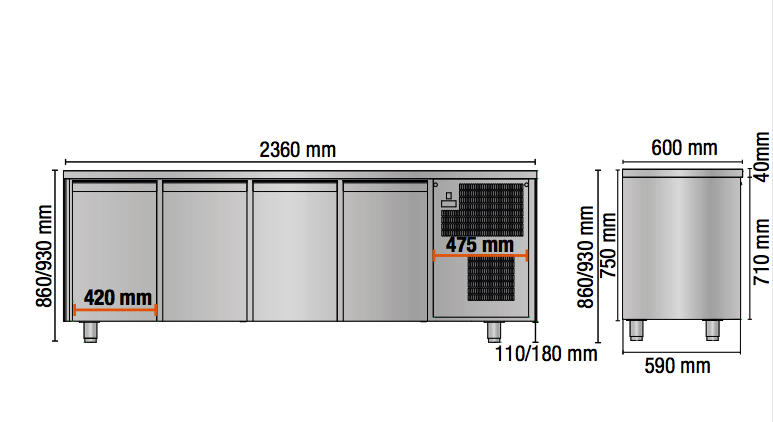 Table réfrigérée positive 4 portes pleines Tecnodom