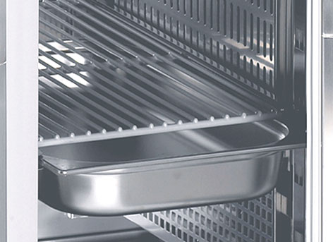 -L’humidité relative élevée fournie par les grands évaporateurs situés entre les portes et la possibilité de passer du mode statique au mode ventilé en font un appareil idéal pour la cuisine professionnelle.
