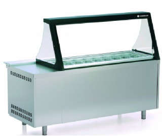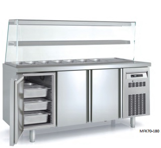 - Plan de travail en AISI-304, capacité pour bacs GN (voir détail)