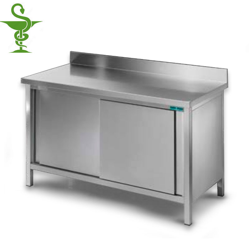 Idéale pour les cliniques, hôpitaux et laboratoires, cette table armoire offre un espace de rangement pratique et accessible. Les portes coulissantes permettent de maximiser l'espace de travail en évitant l'encombrement, et la surface en acier inoxydable avec dosseret intégré assure une hygiène parfaite. Elle est parfaite pour stocker du matériel médical, des instruments et des fournitures, tout en offrant une surface de travail robuste et stable.