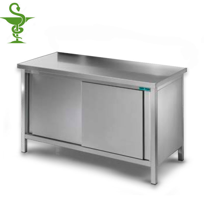 Idéale pour les cliniques, hôpitaux et laboratoires, cette table armoire offre un espace de rangement pratique et accessible. Les portes coulissantes permettent de maximiser l'espace de travail en évitant l'encombrement, et la surface en acier inoxydable assure une hygiène parfaite. Elle est parfaite pour stocker du matériel médical, des instruments et des fournitures, tout en offrant une surface de travail robuste et stable.