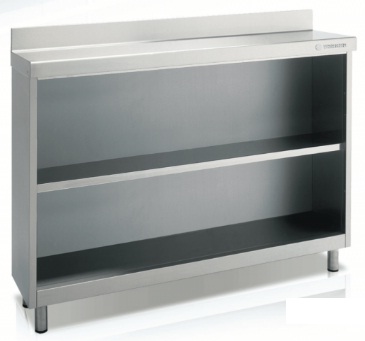 -Panneau arrière en acier plastifié-Plan de travail en acier inoxydable AISI-30418/10, avec façade arrondie et