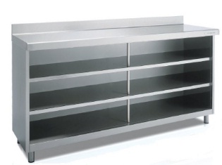 -Panneau arrière en acier plastifié-Plan de travail en acier inoxydable AISI-30418/10, avec façade arrondie et