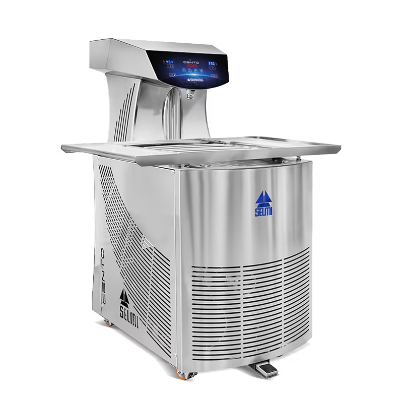 La tempéreuse à chocolat Cento de SELMI est une machine de calibre industriel conçue pour les chocolatiers professionnels, les grandes pâtisseries et les usines de production de chocolat. Avec sa capacité impressionnante de 100 kg et sa production horaire de 300 kg, elle représente l'équilibre parfait entre performance, précision et fiabilité pour les productions à grande échelle.