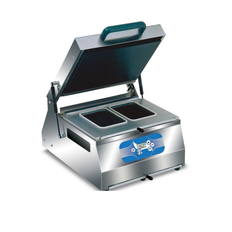Adaptée aux barquettes de dimensions variées, cette machine assure un scellage efficace pour protéger les aliments contre la contamination et le dessèchement.