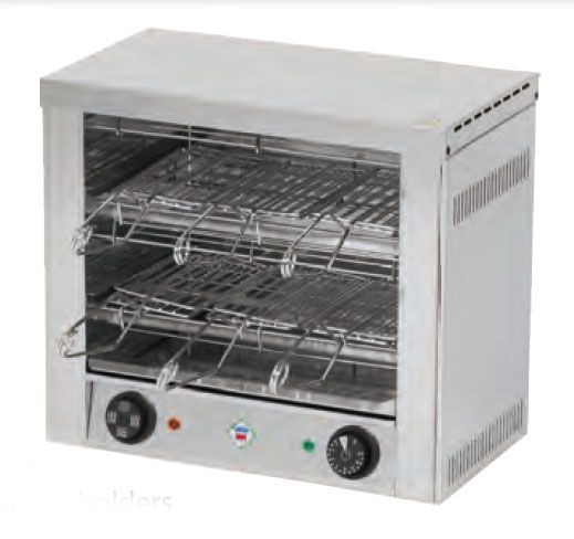 Les toasters sont munis d'éléments de tube de quartz. Ils sont exploités par minuterie mécanique 0 - 15 min, ou il y'a une option de temps infini. En outre, nous offrons large gamme d'accessoires comme des grilles ou des détenteurs de pain grillé.