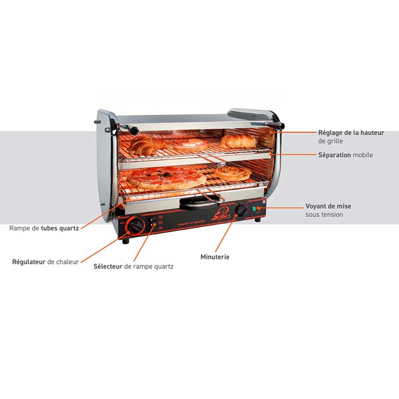 Une double fonction : toaster classique et salamandre professionnelle