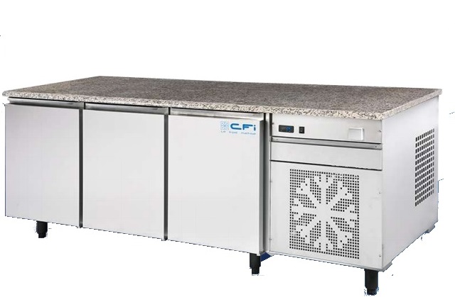 Professionnels de la boulangerie et de la pâtisserie équipez votre cuisine avec du matériel professionnel et découvrez ici notre gamme de tour 600*400 pour pâtisserie. Conserver ses aliments au frais tout en cuisinant et pâtissant, c'est possible avec ces dessertes inox réfrigérées proposant un plan de travail en marbre, en inox ou en granit, et agrémentées de dosseret.