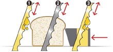 -Construite sur un principe de tranchage en continu grâce à ses tapis de chargement motorisés (1 tapis de chargement inférieur et 1 tapis supérieur ajustable électriquement pour compresser le pain et le pousser dans les cadres de coupe), elle permet de trancher une grande variété de pains avec efficacité.