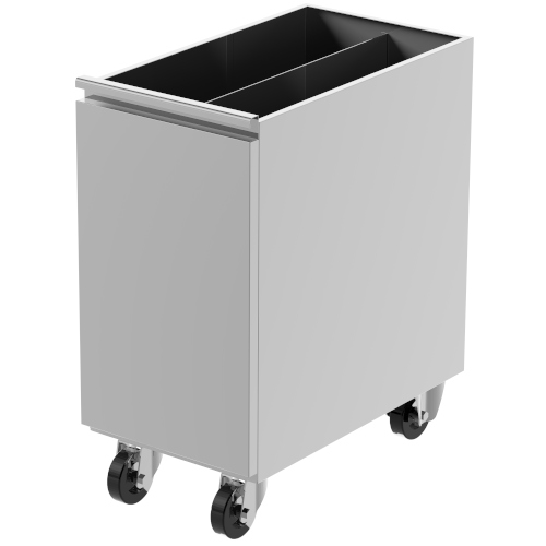 Typology : avec séparateur Dimensions (mm) : 450 x 550 x 780 mm En acier inox AISI 304 Avec roues galvanisées Ø100