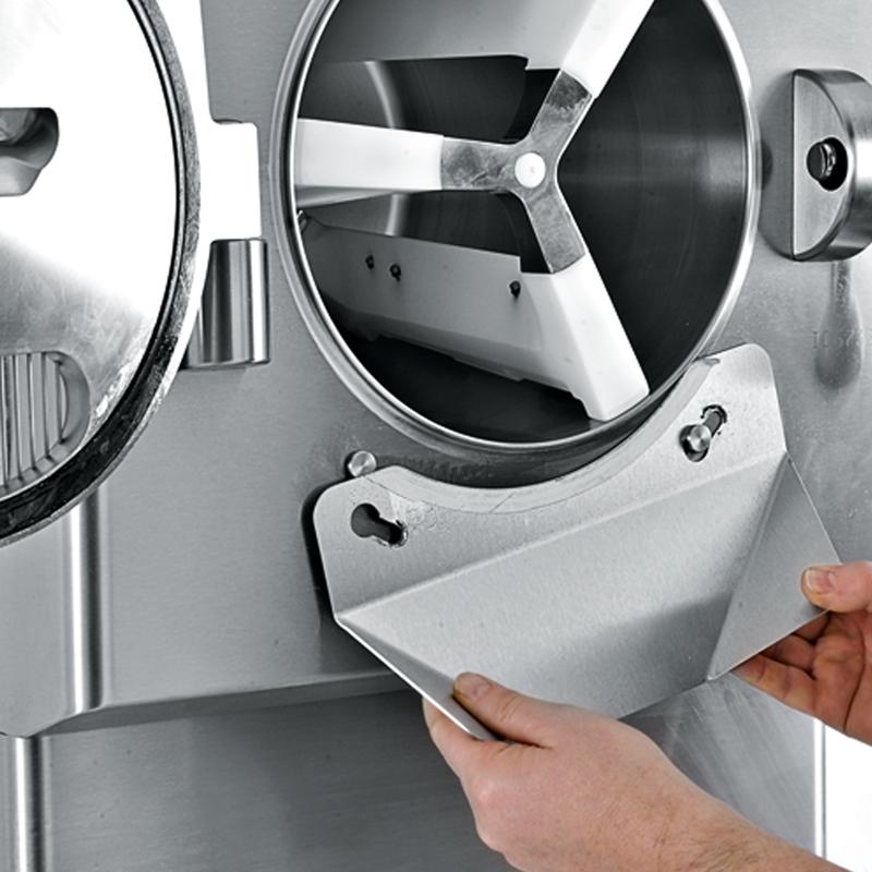 Le cylindre et la tôle frontale forment une pièce unique pour permettre un nettoyage parfait et garantir le maximum d’hygiène.