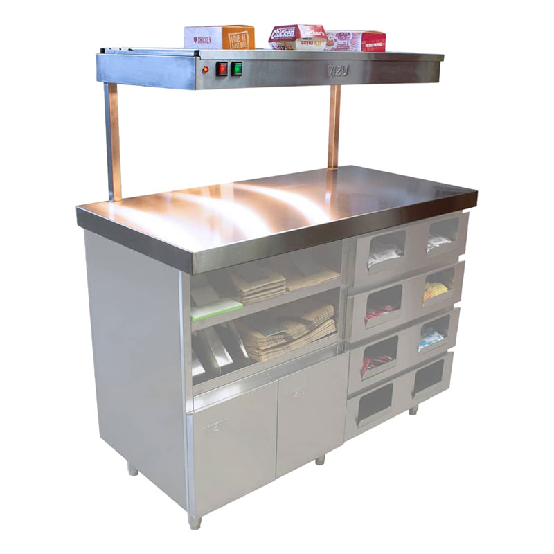 L'unité d'assemblage de hamburgers chauffés VIZU, modèle VIHBA, offre une solution pratique pour préparer et servir des produits cuits rapidement et efficacement. Voici les caractéristiques principales de cette unité :