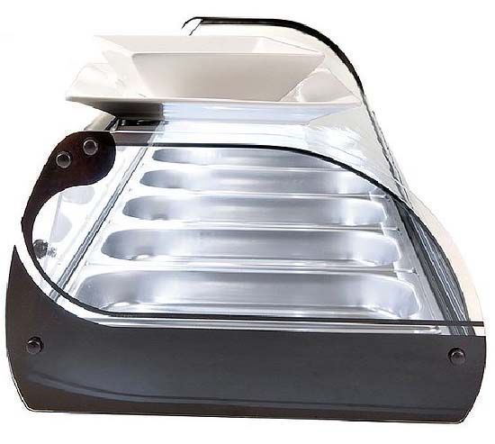 Vitrine Bain Marie LED avec 6 bacs gastronomes