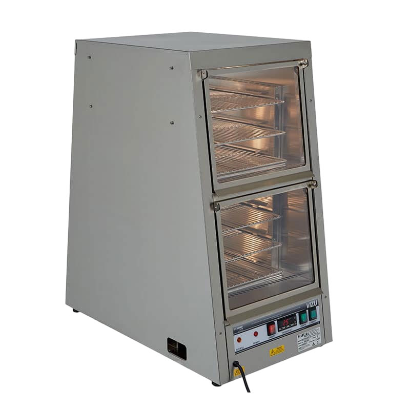 La vitrine chaude 2 portes VIZU (modèle VI400PTMS) est conçue pour présenter et maintenir chauds une variété d'aliments dans un environnement commercial tel qu'un restaurant, une cafeteria ou une boulangerie.