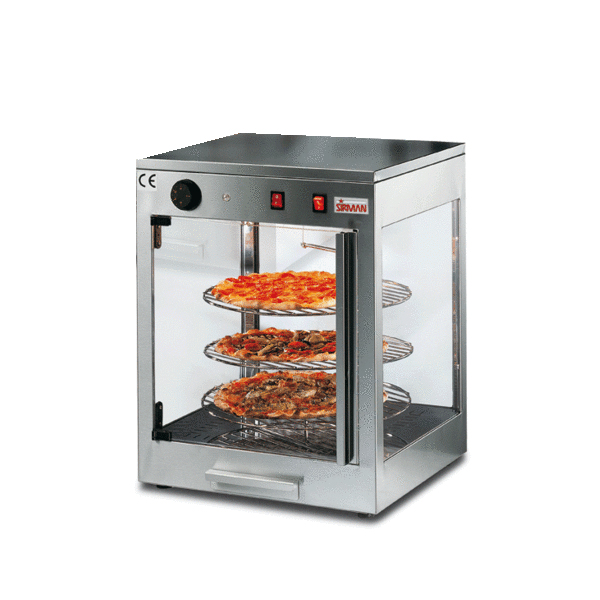 - Vitrine chauffante rotative avec 4 faces vitrées