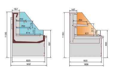 Modelé spécialement conçu pour la vente de produit pré-emballes tels que sandwichs snacks légumes ou boissons froid ventilé 3 niveaux joues latérales panoramique avec éclairage par tablette