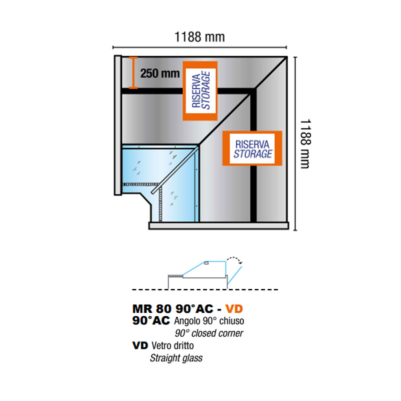 La vitrine d'exposition MR80 de Tecnodom, équipée d'une vitre droite et d'un coin fermé, est parfaite pour les boulangeries, pâtisseries, hôtels, et restaurants. Grâce à sa température de fonctionnement optimale (+2°C/+5°C) et son éclairage économique, elle garantit une conservation et une présentation irréprochables de vos produits.