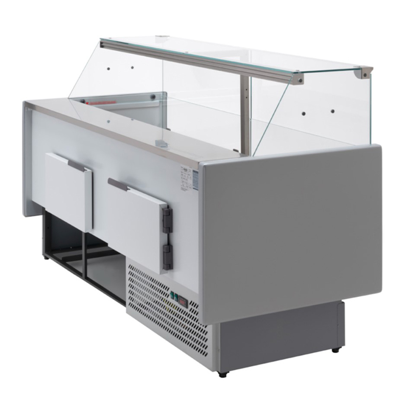 Elle est équipée de 4 portes de rangement, offrant un volume de stockage de 80 L pour vos accessoires ou produits supplémentaires. Ce modèle est non réfrigéré, ce qui en fait une solution parfaite pour exposer des produits qui ne nécessitent pas de conditions de température contrôlées, comme les pâtisseries, gâteaux, ou produits d'épicerie fine.