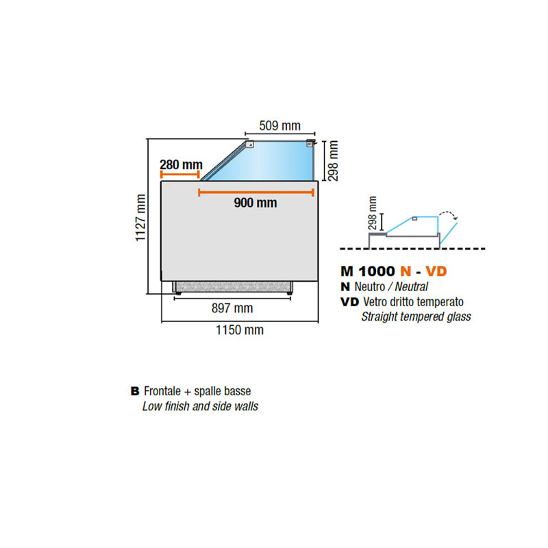 La vitrine réfrigérée M1000 VD-200 avec parois latérales est spécialement conçue pour les professionnels recherchant un matériel performant et esthétique pour exposer leurs produits dans des conditions idéales. Que vous soyez restaurateur, boulanger ou hôtelier, cette vitrine offre une présentation lumineuse et une conservation optimale à une température de +2°C à +5°C, parfaite pour les produits alimentaires frais.