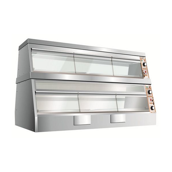 - Les vitrines chaudes à deux niveaux sont conçus spécifiquement pour la portion et montrer la nourriture chaude au moment où la vente dans des opérations au détail de service d'alimentation.