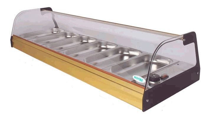 - Vous pouvez servir les aliments directement du plateaux chaudes du l'exposeur.