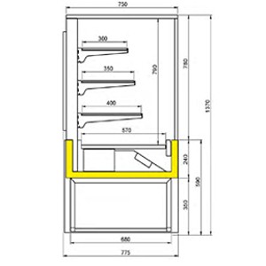 - Exposition en acier inox AISI 304, profondeur exposition 570 mm, hauteur 790mm