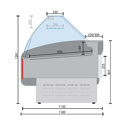 Cette vitrine réfrigérée possède un présentoir très ample pour l’exposition de produits (900 mm) – la plus grande sur le marché -, en favorisant au mieux leur visibilité. La réfrigération se fait par le biais de froid ventilé, pour optimiser les conditions et la distribution de froid, ainsi que pour garantir la fraîcheur et la qualité des aliments exposés.
