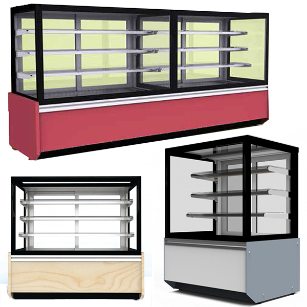 Son design rectiligne et moderne, à vitres droites, et son ample exposition, attire l’attention du client et stimule l’achat de produits de pâtisserie ou de desserts.