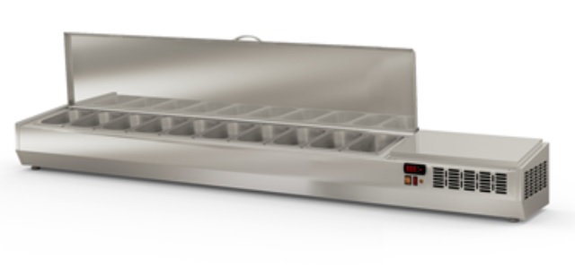 Vitrine refrigeree 10 bacs tout inox 18/10 pour recevoir 10 bacs GN 1/4 (bacs non fournis)