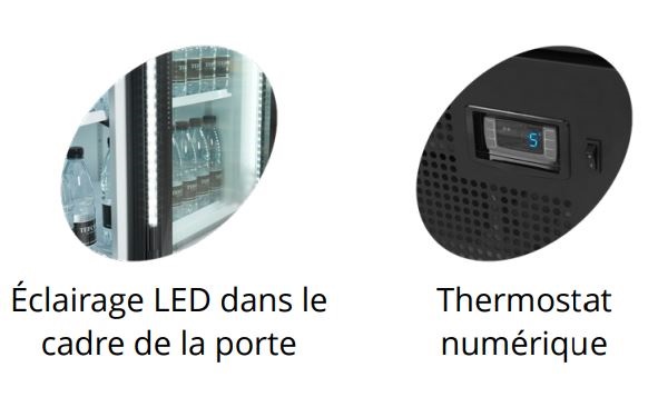 -Les portes vitrées, les tablettes, l’éclairage LED dans les portes, et la finition en général ont été améliorés afin d’optimiser la présentation des produits.