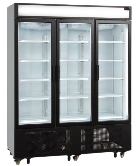 -Cette vitrine réfrigérée à 3 portes convient bien aux supermarchés, épiceries et stations-services, et sa finition noire améliorée permet également de l’employer dans les restaurants, cafés et bars.