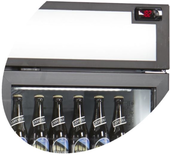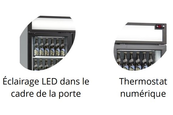 -Les portes vitrées, les tablettes, l’éclairage LED dans les portes, et la finition en général ont été améliorés afin d’optimiser la présentation des produits.