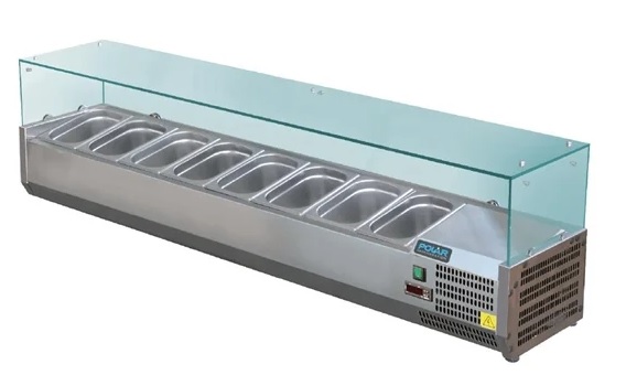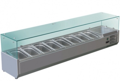 Vitrine refrigeree 8 bacs tout inox 18/10 pour recevoir 8 bacs GN 1/4 profondeur 150 mm (bacs non fournis)