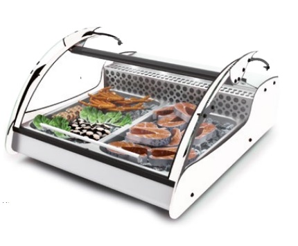 -Vitrine réfrigérée à double accès pour l’exposition de poissons, salades, desserts et aliments frais en général