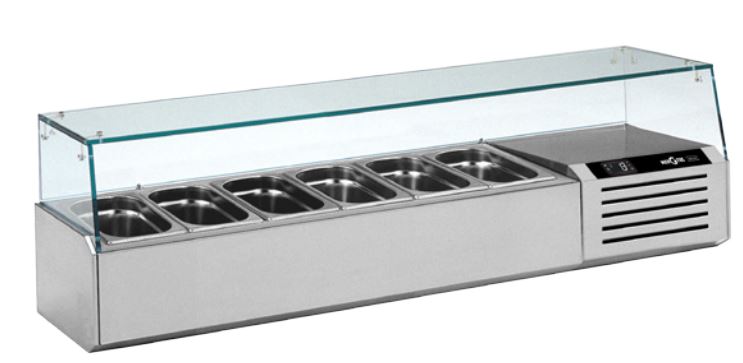 -Le kit réfrigéré L7 permet un accès rapide aux ingrédients de la pizza. La cuve réfrigérée a été conçue pour les bacs GN 1/4 et est protégée par un capot en verre.