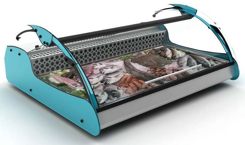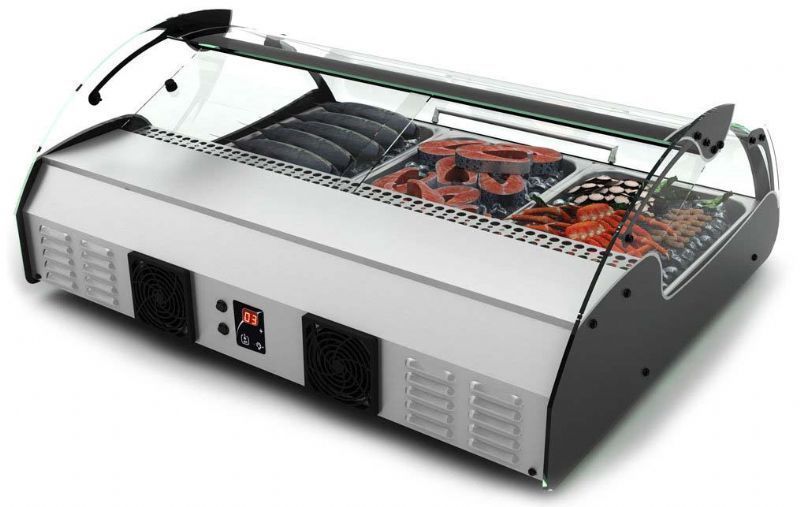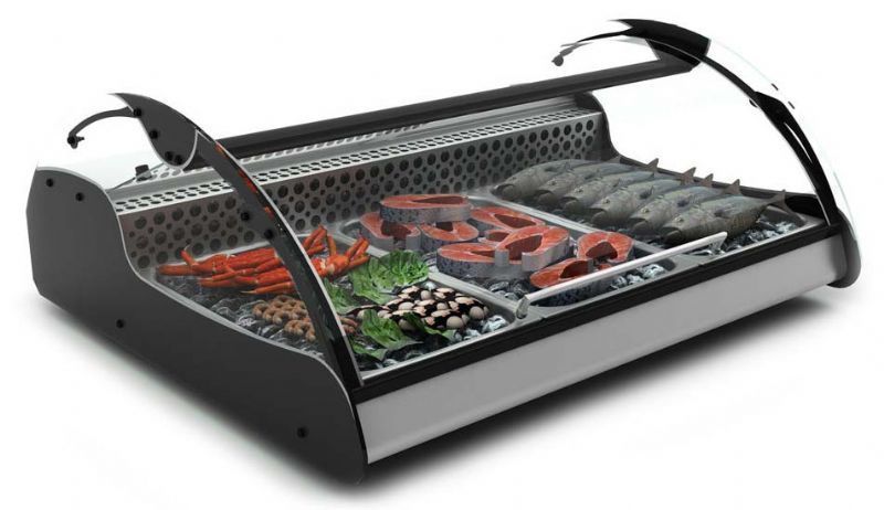 -Vitrine réfrigérée à double accès pour l’exposition de poissons, salades, desserts et aliments frais en général