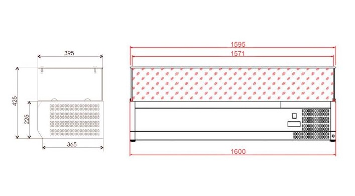 -Dim ext(LxPxH): 1600 x 395 x 225 mm