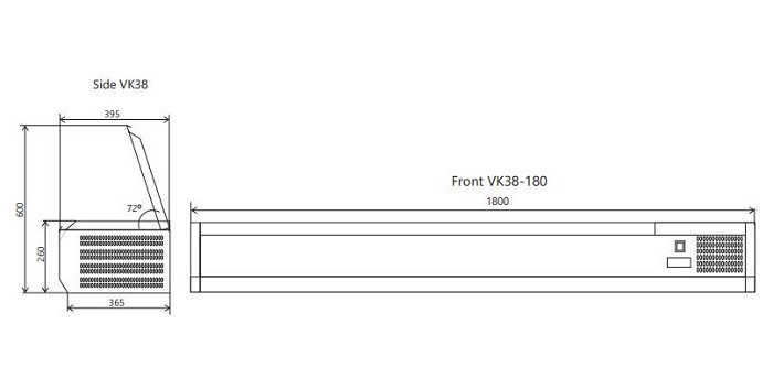 -Dim ext(LxPxH): 1800 x 395 x 260 mm