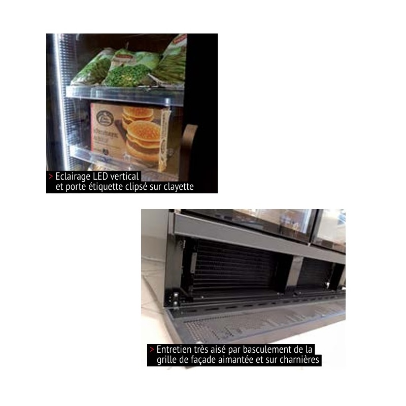 - Éclairage LED Blanc 4000K : Une lumière blanche douce, positionnée entre les portes et aux extrémités, illumine vos produits surgelés, les rendant plus attrayants tout en économisant de l'énergie.