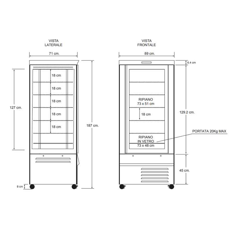 - Dimensions (L × P × H) : 890 × 710 × 1870 mm