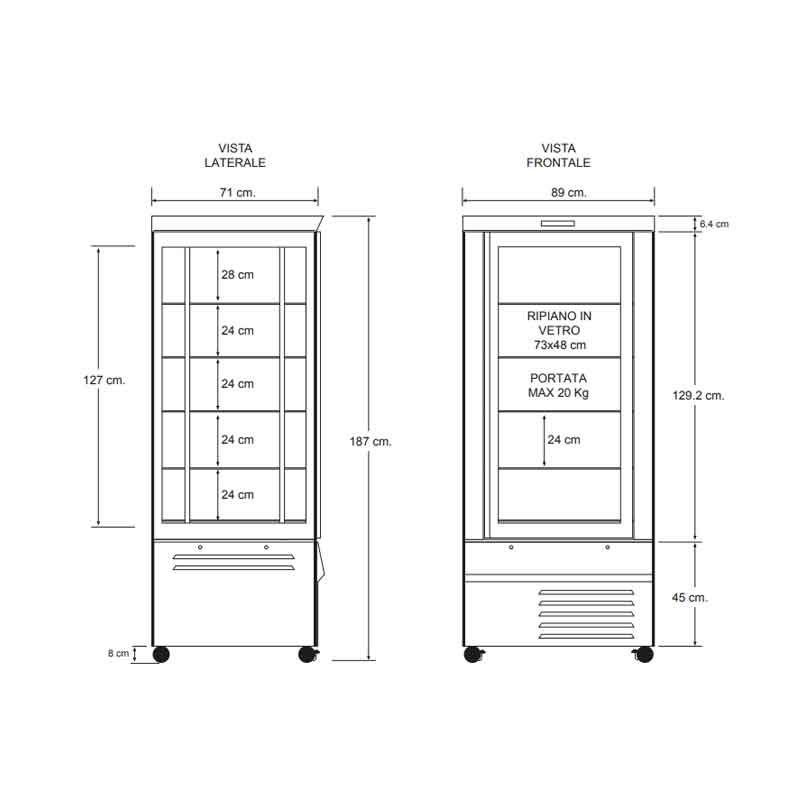 Dimensions (L × P × H) : 890 × 720 × 1870 mm