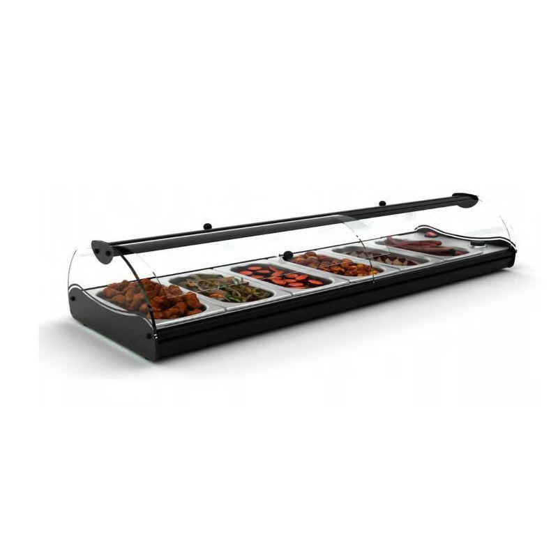 -Cette vitrine maintient vos aliments au chaud grâce au bain marie.